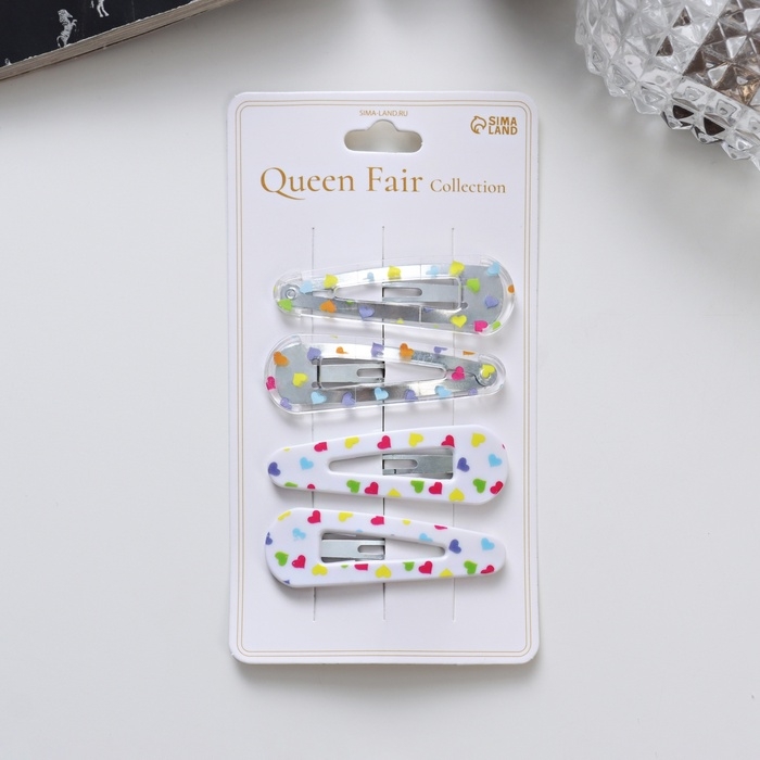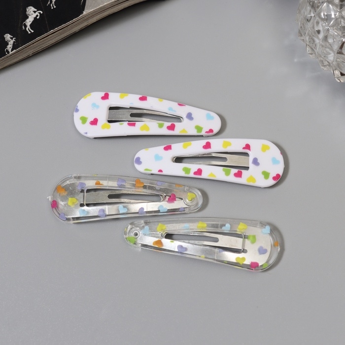 Невидимка для волос "Глория" (набор 4 шт) сердца, 5 см