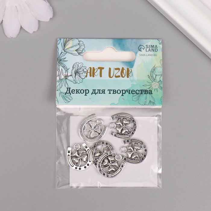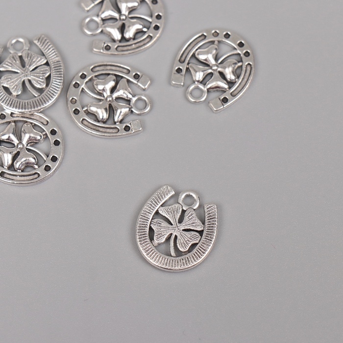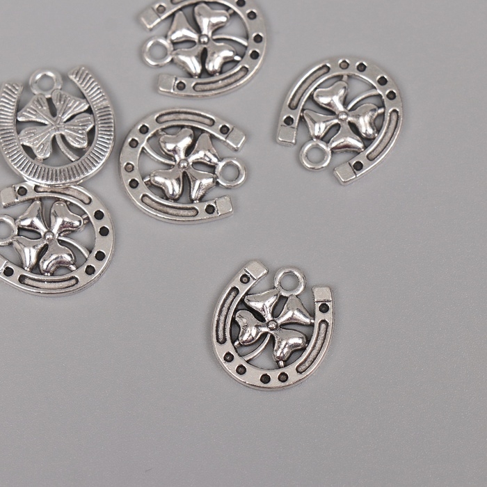 Декор для творчества металл "Подкова с клевером" серебро набор 6 шт 1,1х1,4 см