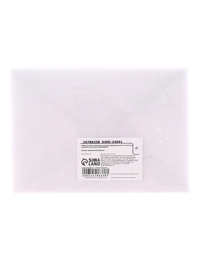 Набор 10 штук конвертов из кальки прозрачные (11.5 х 16.5 см), плотность 113 г/кв.м