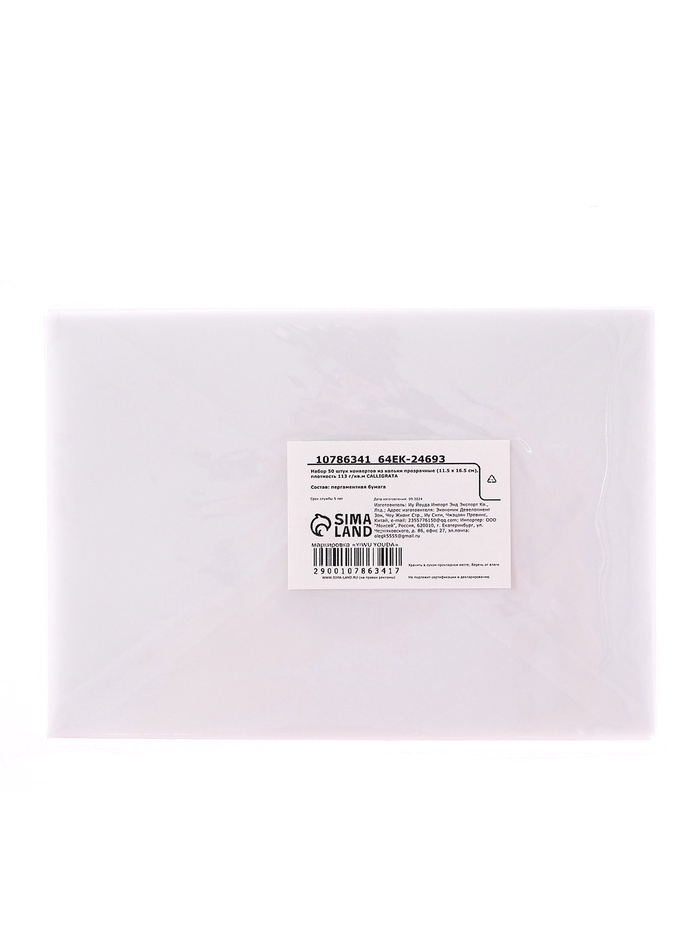 Набор 50 штук конвертов из кальки прозрачные (11.5 х 16.5 см), плотность 113 г/кв.м