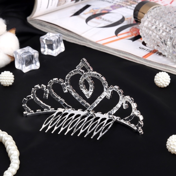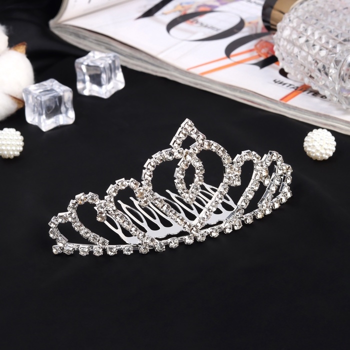 Диадема для волос "Медея" сердце величие, 10х4,5 см, серебро