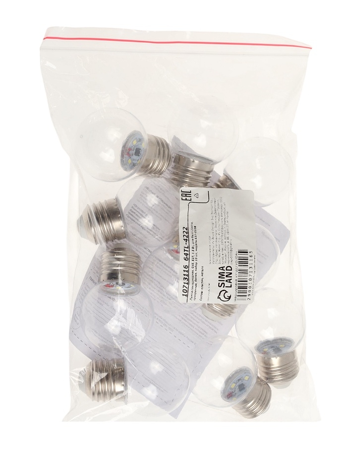 Лампа светодиодная, G45, Е27, 1.5 Вт, для белт-лайта, прозрачная, белая, набор 10 шт