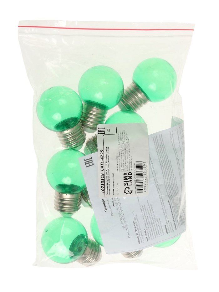 Лампа светодиодная, G45, Е27, 1.5 Вт, для белт-лайта, прозрачная, зеленая, набор 10 шт