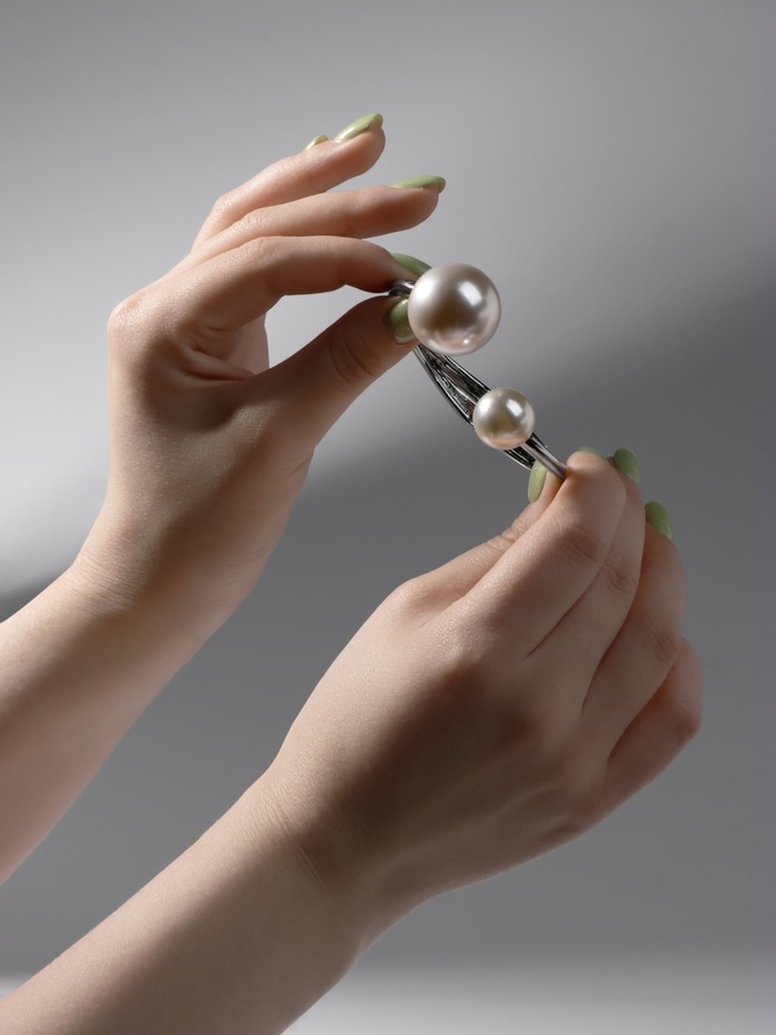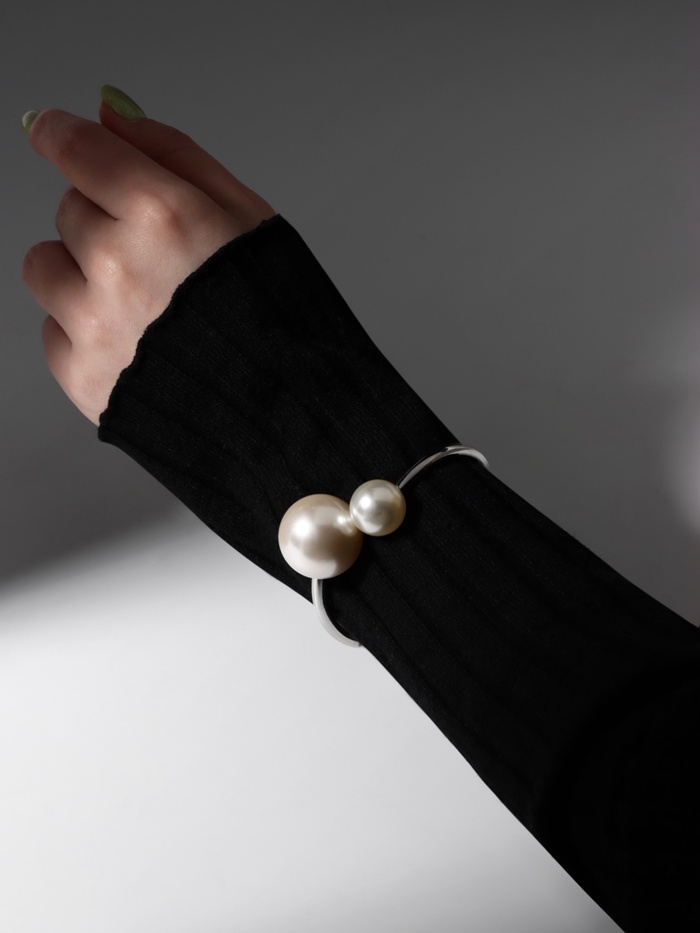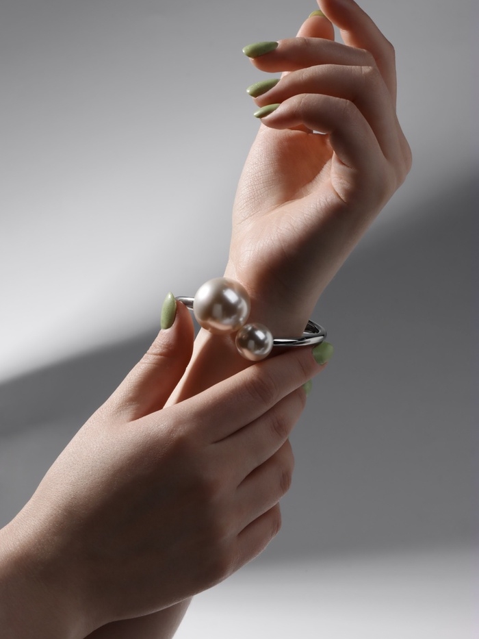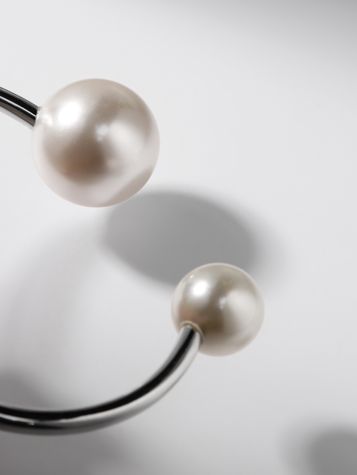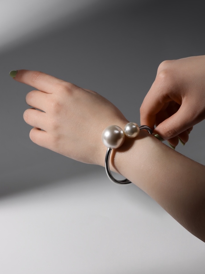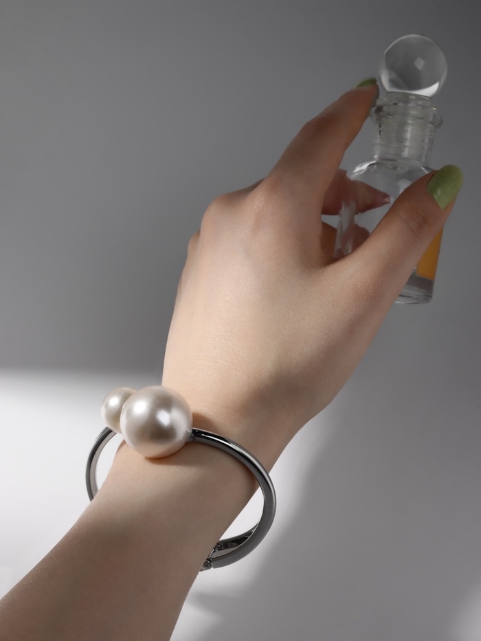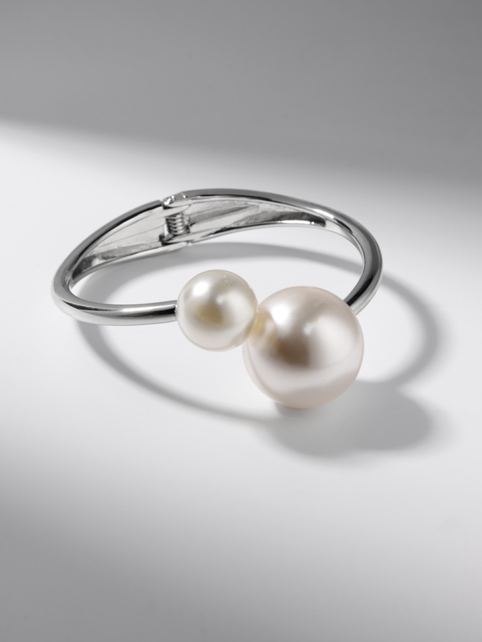 Браслет металл «Жемчужный» две бусины, цвет серебро