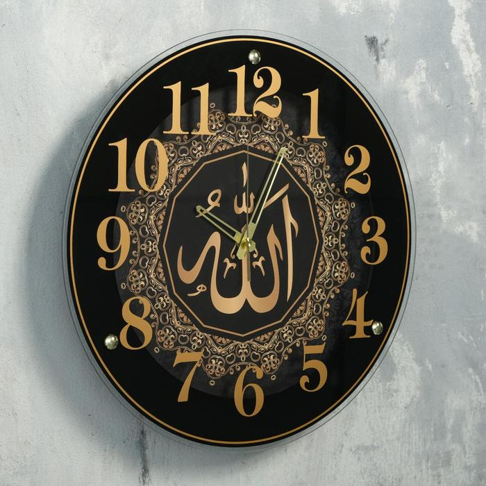 Часы настенные, интерьерные "Аллах", d-39 см, бесшумные, корпус черный