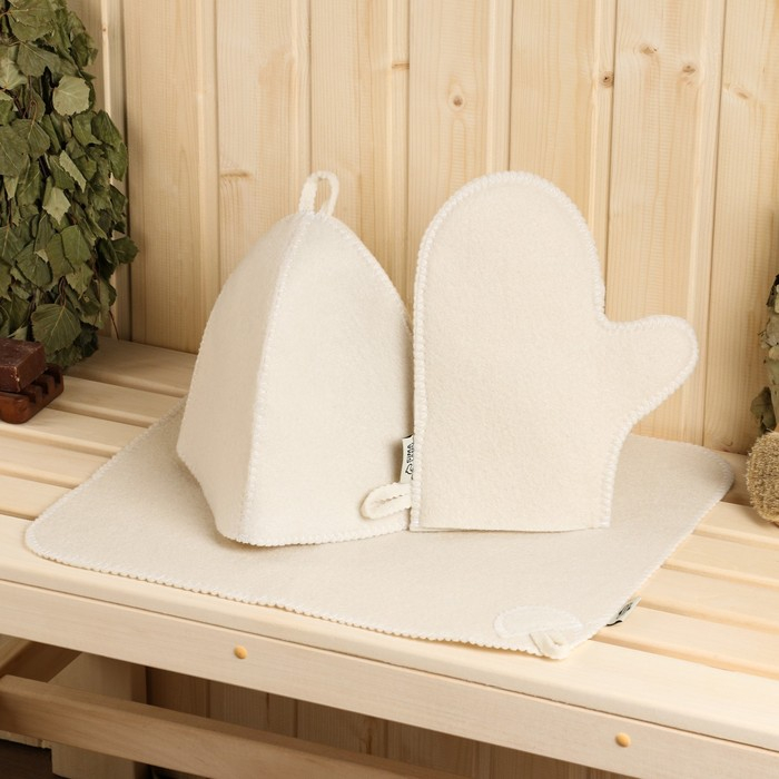 Для комфортного отдыха в парной возьмите с собой набор банных принадлежностей. Предметы из этого комплекта предохраняют тело от перегрева и являются средствами индивидуального пользования. Влажные изделия рекомендуется сушить в расправленном виде на горизонтальной поверхности. Принадлежности из войлока и фетра стирайте вручную при температуре воды 30 °C.