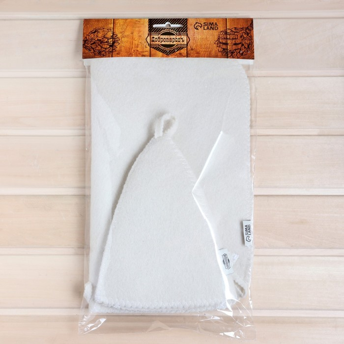 Набор для бани "Белый" без вышивки шапка, варежка, коврик в плёнке