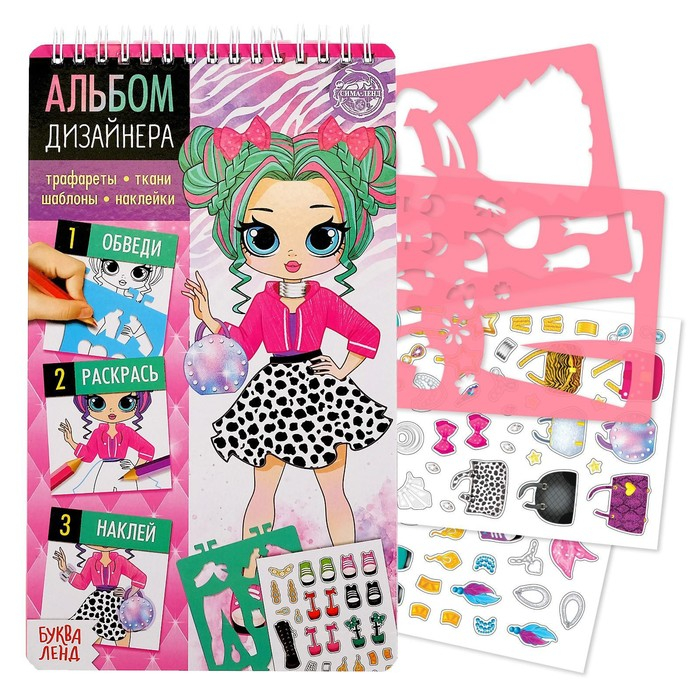 Альбом с наклейками и трафаретами «Модный стилист», 72 стр.