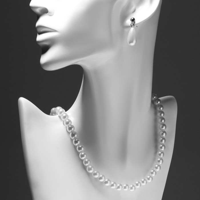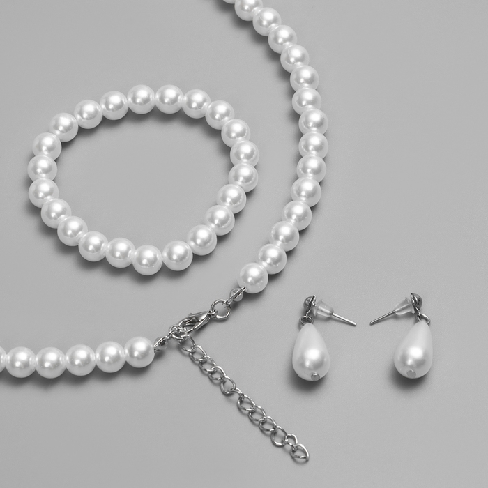 Набор 3 предмета: серьги, бусы, браслет «Классика», цвет белый, 45 см