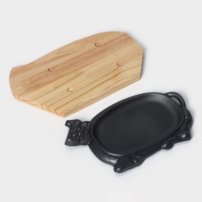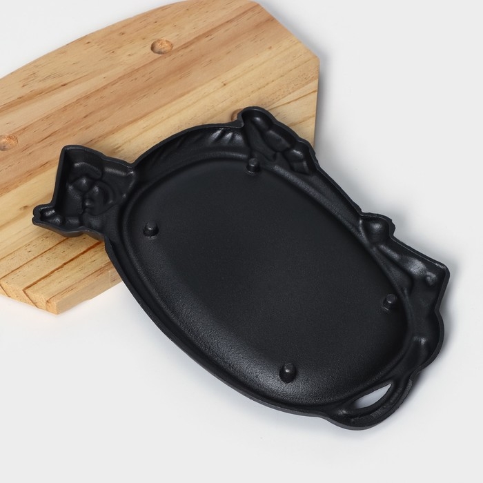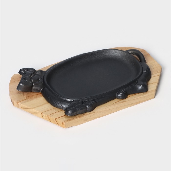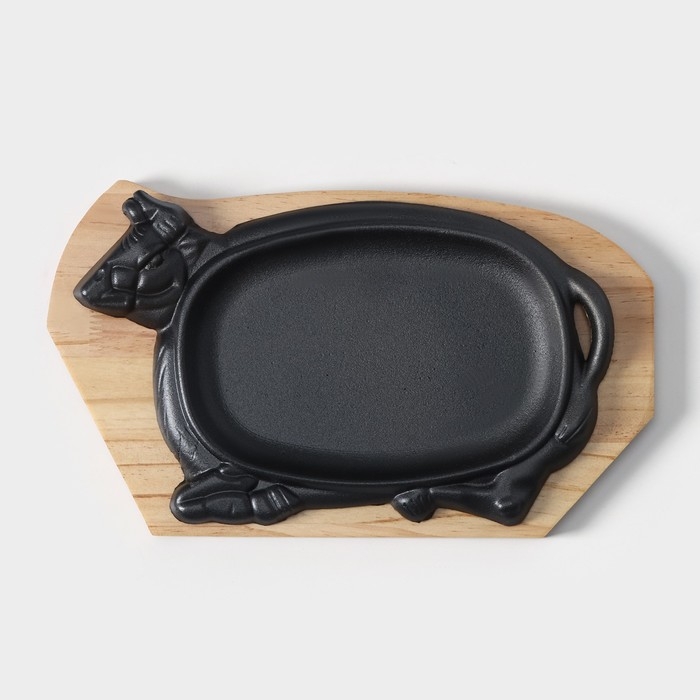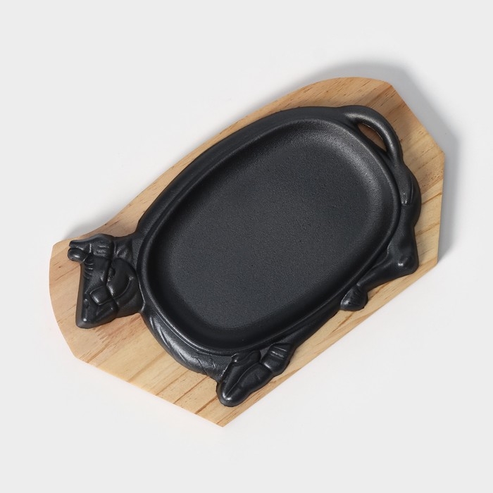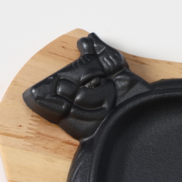 Сковорода чугунная «Корова», 30×18 см, на деревянной подставке МИКС