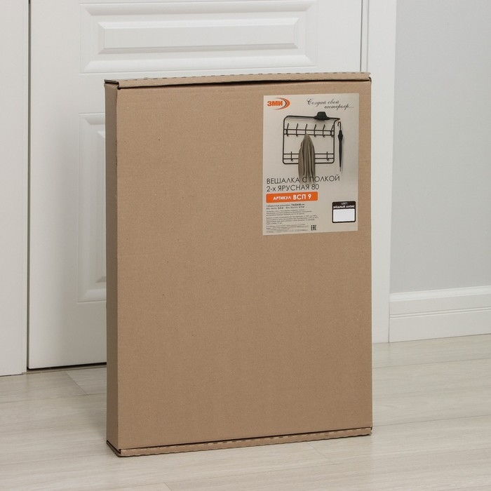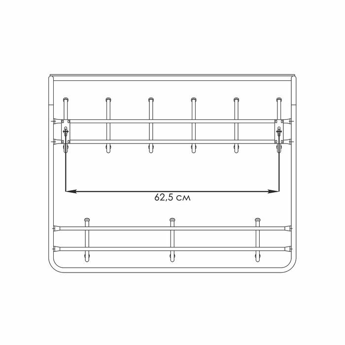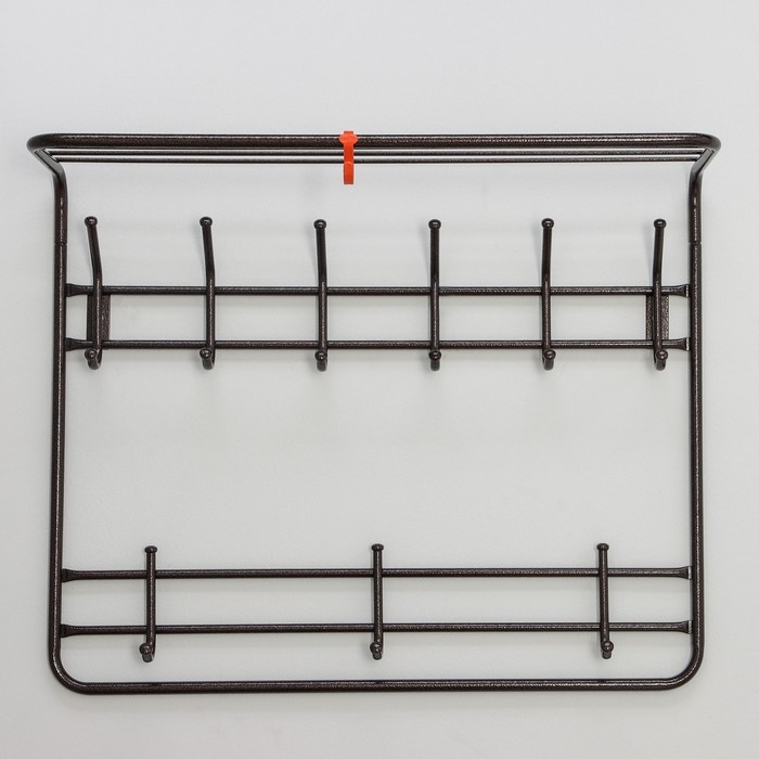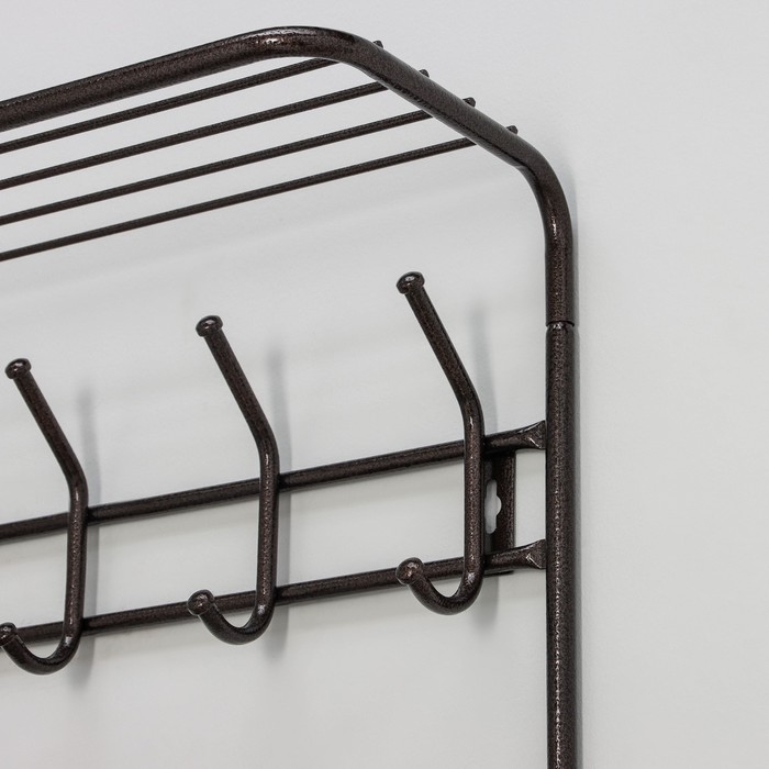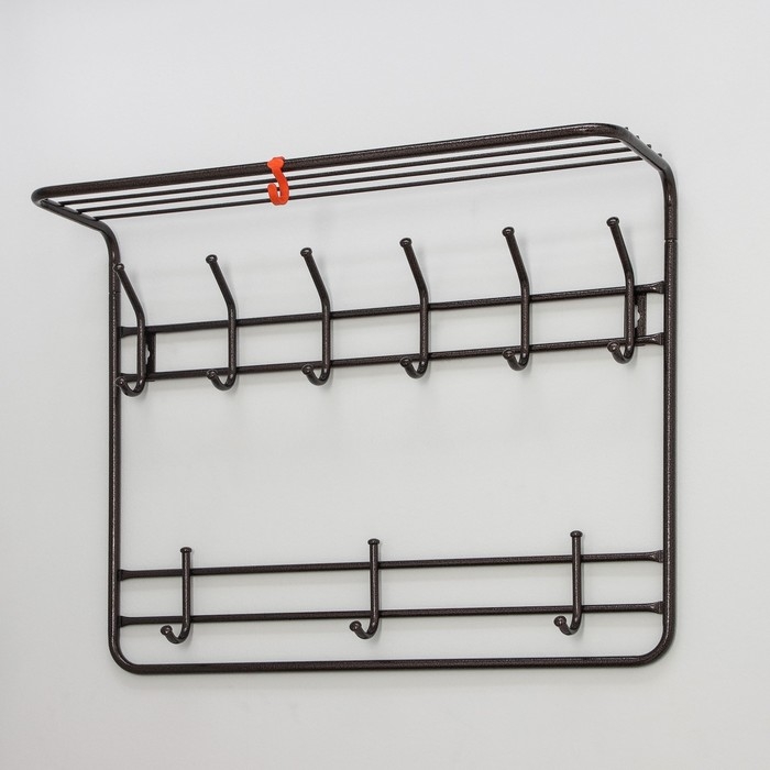 Вешалка настенная, с полкой, 9 крючков, 2 яруса, 73×22×58 см, коричневая