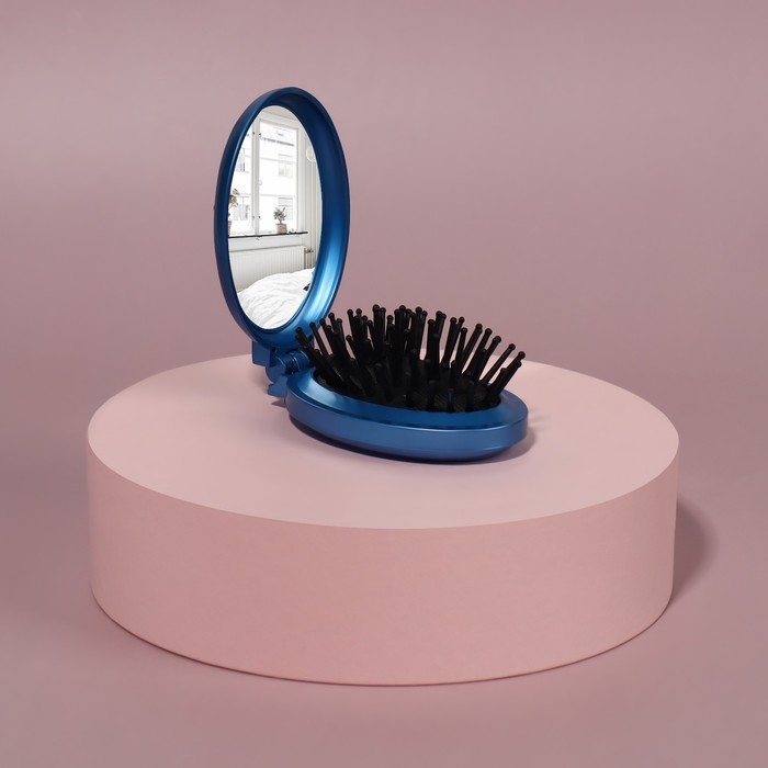 Расчёска массажная, складная, с зеркалом, d = 6,6 см, цвет зелёный