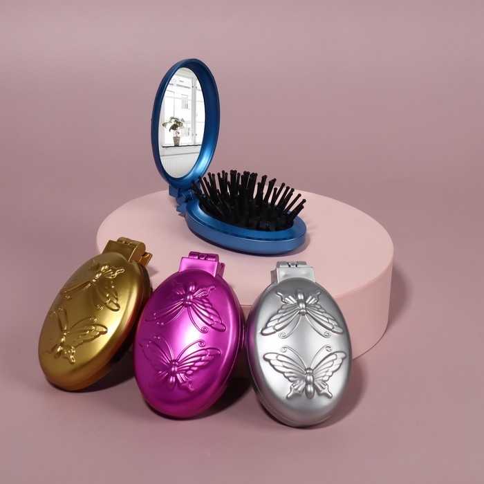 Расчёска массажная «Перламутровая бабочка», складная, с зеркалом, 5,5 × 9 см, цвет МИКС