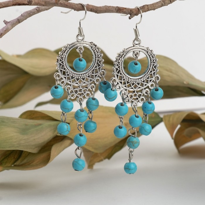 Серьги «Бирюзовый мир» коса, цвет голубой в серебре