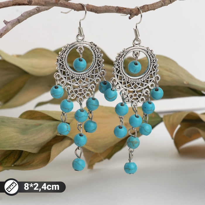Серьги "Бирюзовый мир" сфера, цвет голубой в серебре