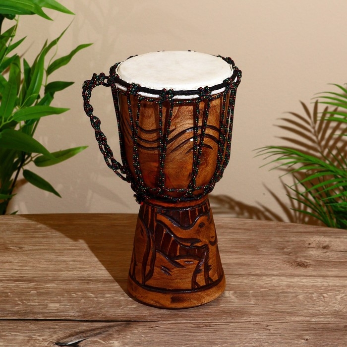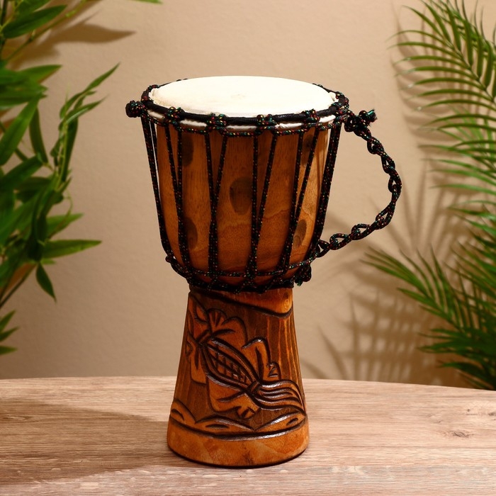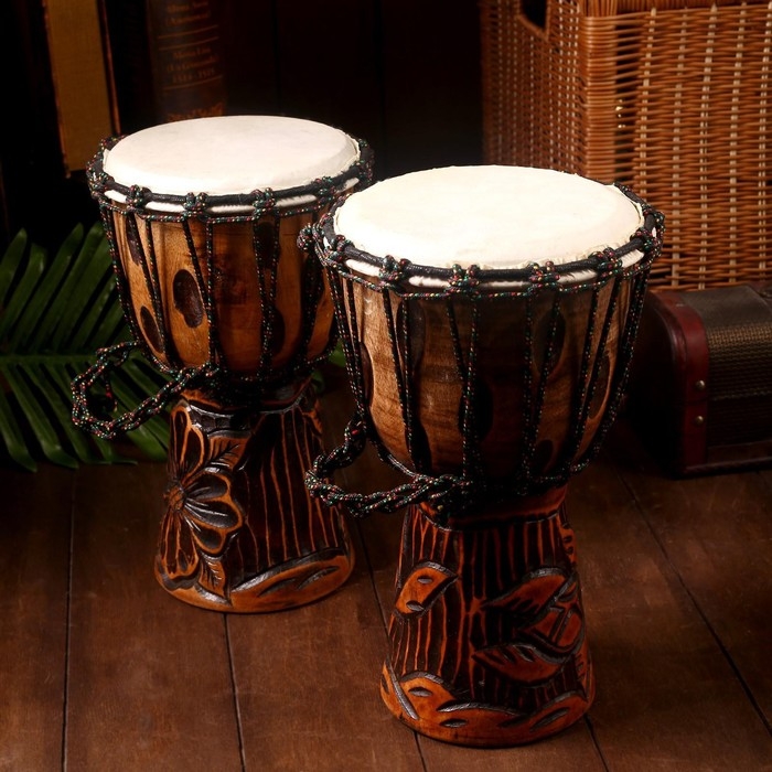 Барабаны Джембе популярны и в XXI веке среди молодежи, ценителей африканской культуры и хорошего ритма. «Шум острова» выполнен вручную индонезийскими мастерами-ремесленниками. Посмотрите на оригинальный резной орнамент, неподражаемый декор, форму. Практически не отличить от традиционного малийского музыкального инструмента. Удивите гостей на своей вечеринке, достав барабан и сыграв разученную мелодию, подарите им кусочек африканского солнца!