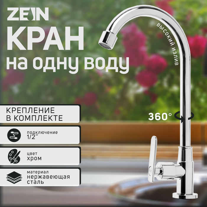 Моносмеситель ZEIN Z05, нержавеющая сталь, поворотный излив, хром