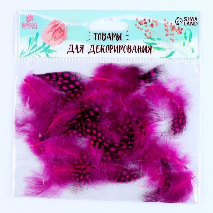 Набор перьев для декора 10 шт., размер 1 шт: 5 × 2 см, цвет розовый с чёрным