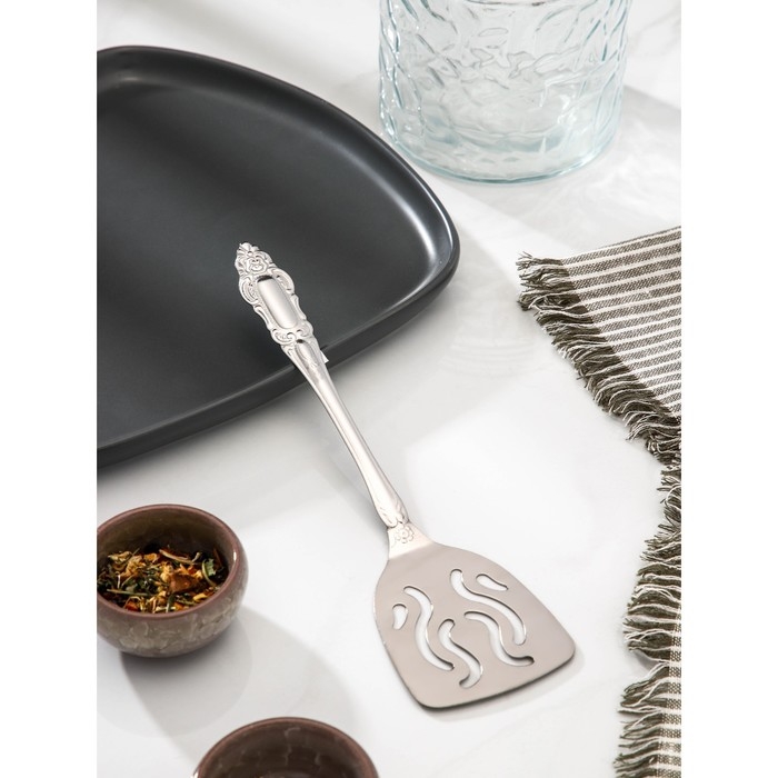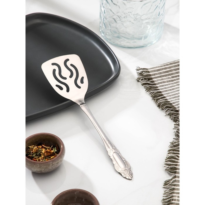 Лопатка из нержавеющей стали перфорированная «Королевство», длина 23 см, с отверстиями