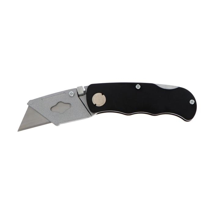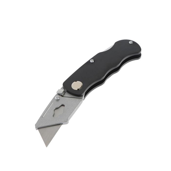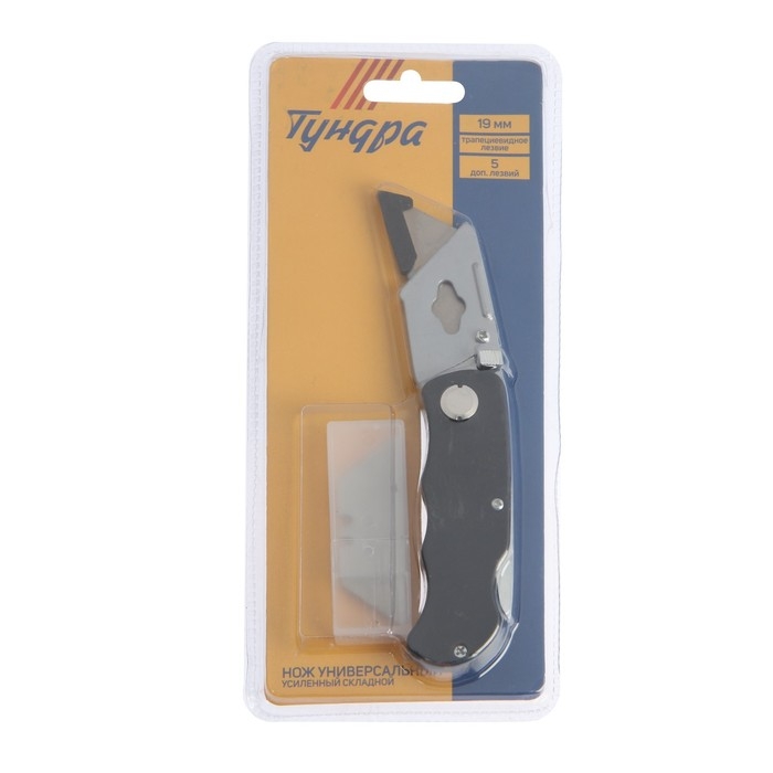 Нож универсальный складной ТУНДРА, металл. корпус, трапециевидное лезвие + 5 запасных, 19 мм