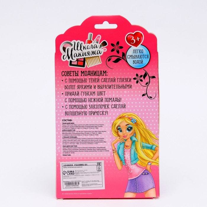 Детская косметика «Школа макияжа» позволит ребёнку устраивать эксперименты со своим стилем. Набор поможет девочке подобрать оптимальные варианты для вечерних и дневных образов. Хранить это можно в косметичке, которая также входит в комплект. Косметика без труда смывается водой или с помощью ватного диска и безопасна для детской кожи.