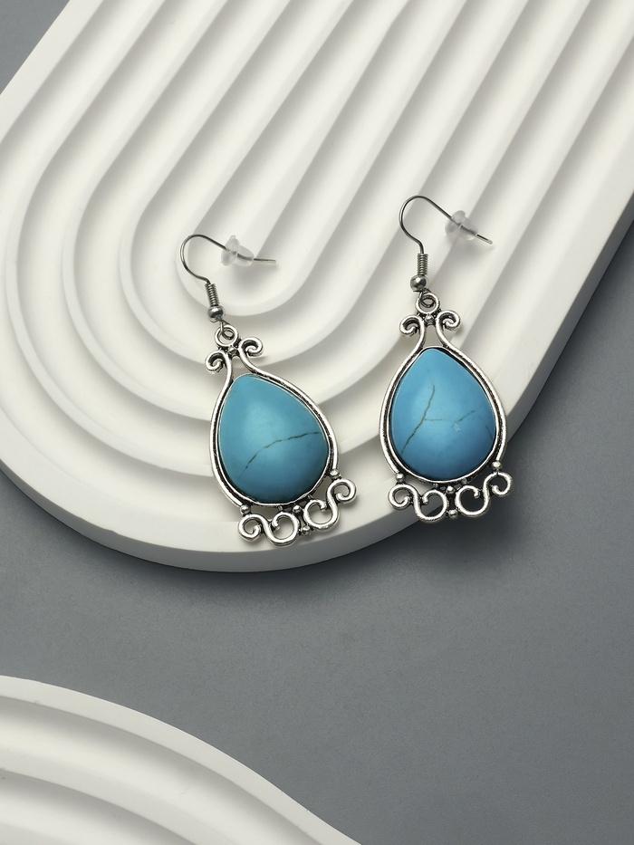 Серьги «Бирюзовый мир» капля, цвет голубой в чернёном серебре