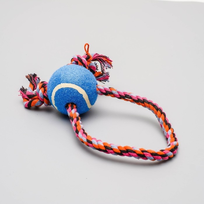 Игрушка тренировочная канатная "Круг с мячом", 120 г, микс цветов
