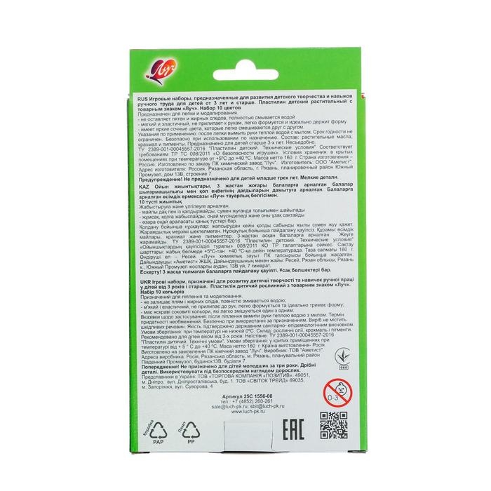 Пластилин на растительной основе, 10 цветов, 160 г "Кроха", МИКС