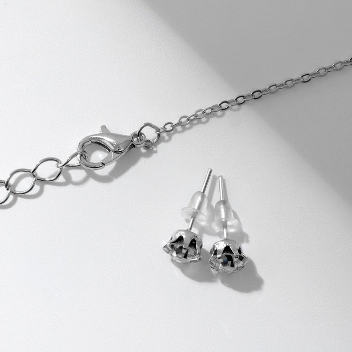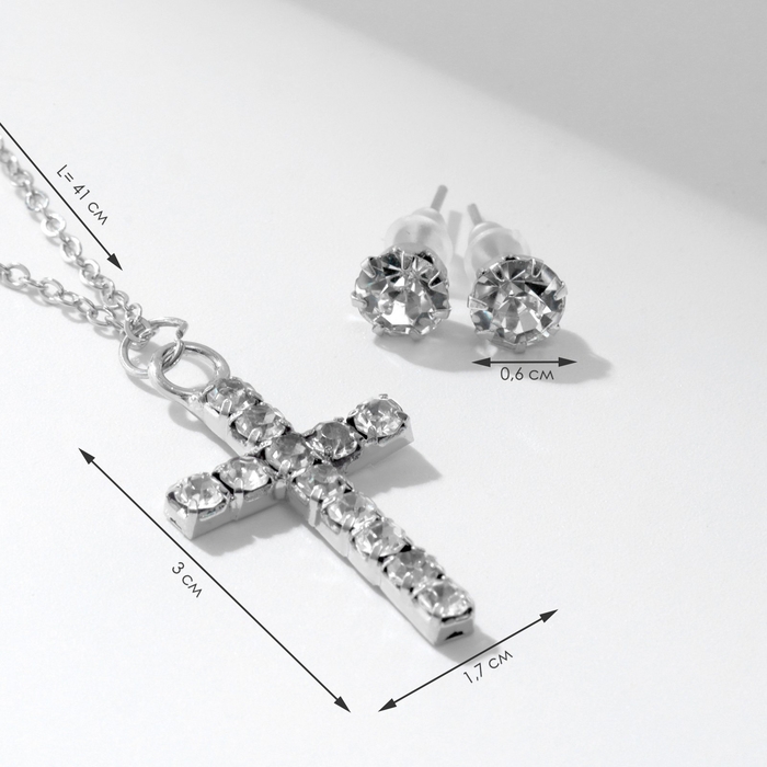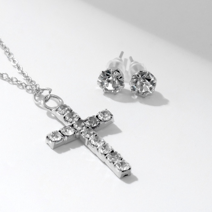 Гарнитур 2 предмета: кулон, серьги «Крестик», цвет белый в серебре, 43 см