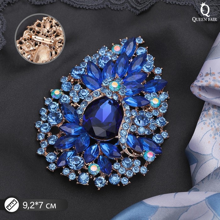 Брошь «Императрица» цветущая, цвет синий в золоте