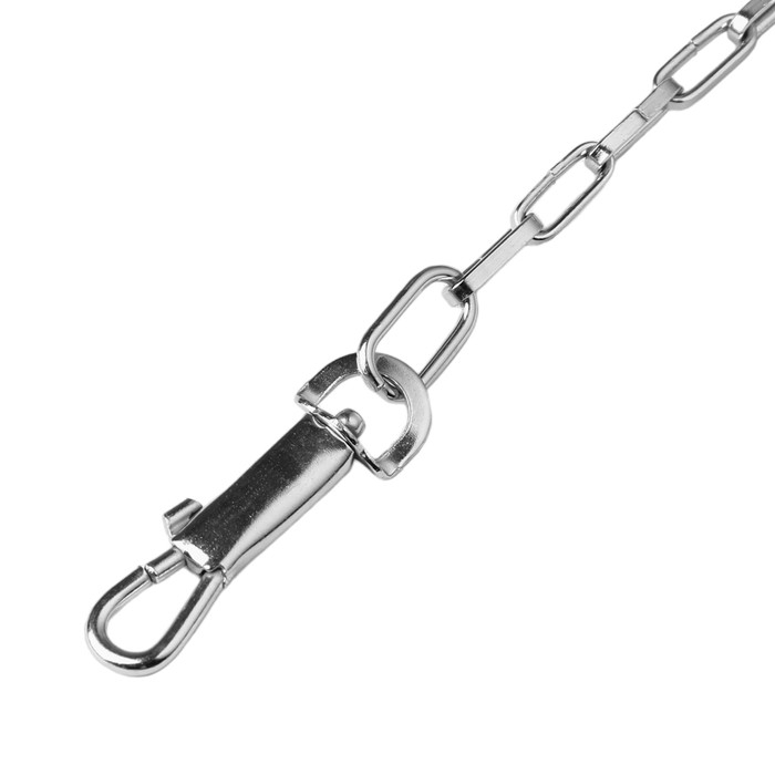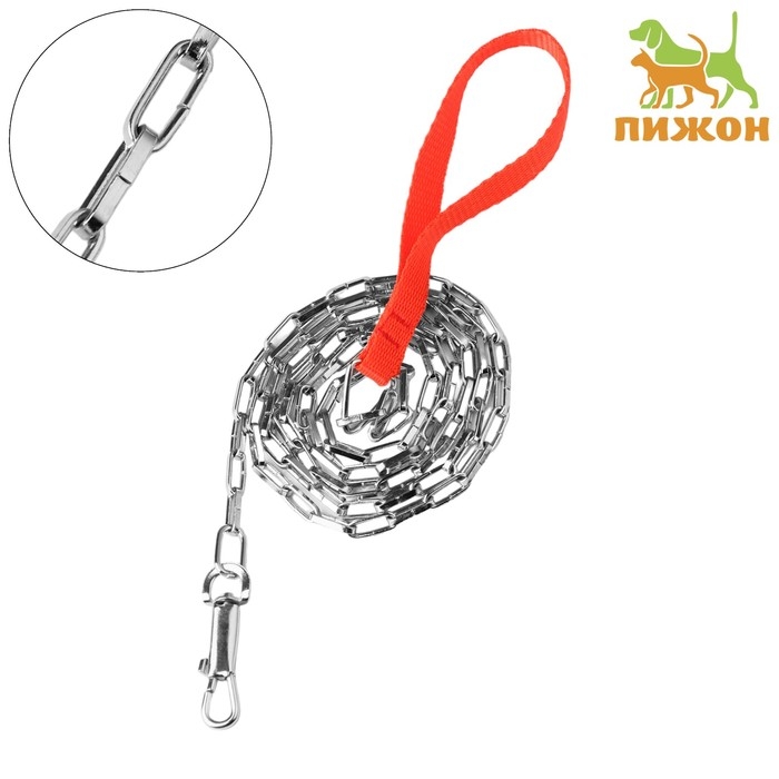 Поводок состоит из хромированной цепочки и мягкой нейлоновой ручки.