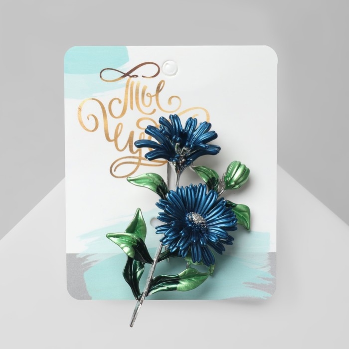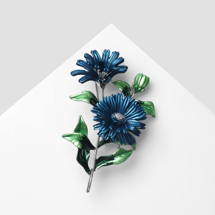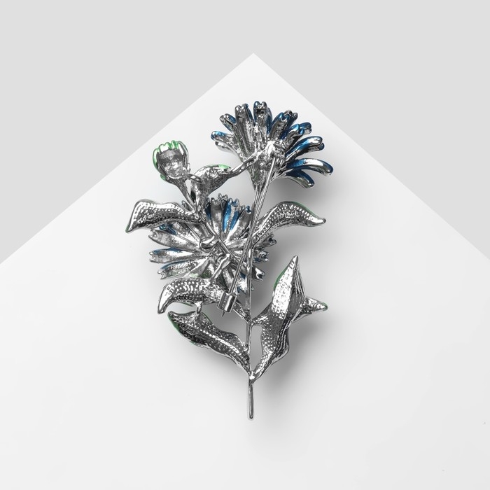 Брошь «Цветы» календула, цвет сине-зелёный в серебре