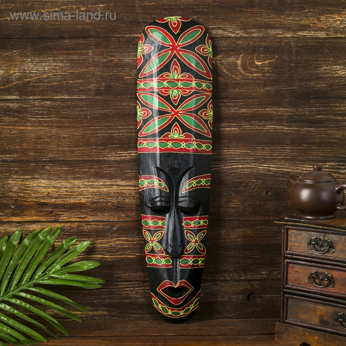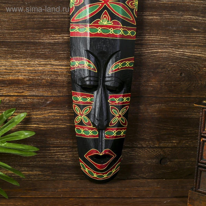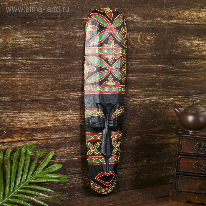 Маска настенная дерево "Абориген с ярким узором" 3х12х50 см