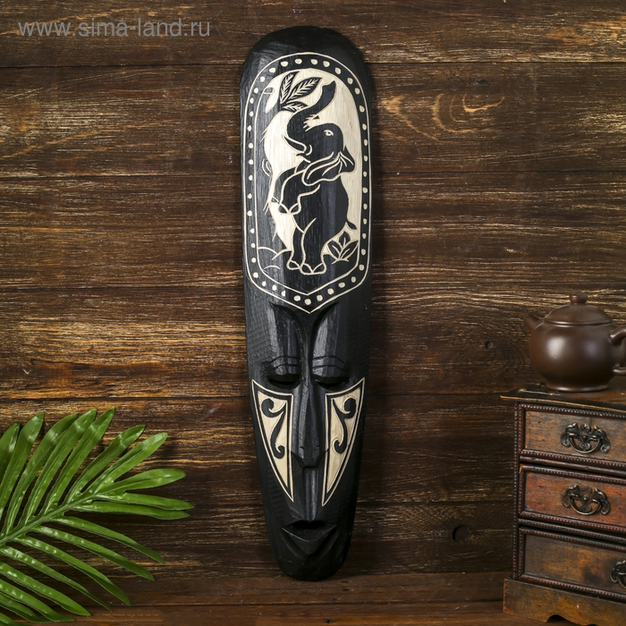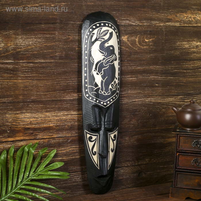 Маска настенная дерево "Абориген со стоящим слоном" 3х12х50 см