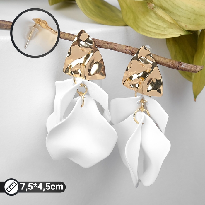 Серьги ассорти «Ветер» мятые треугольники, цвет бело-золотой