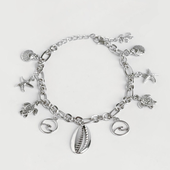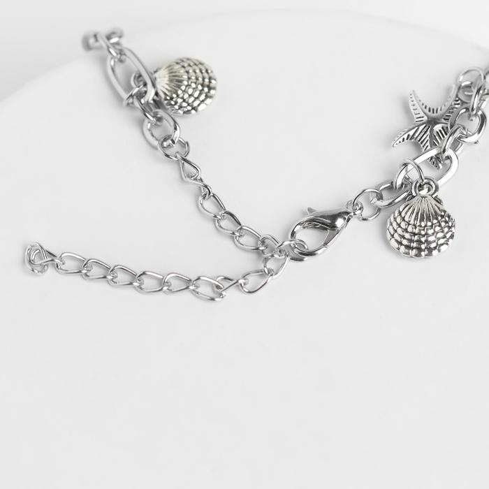 Браслет на ногу «Морские знаки» цвет серебро, L=22 см