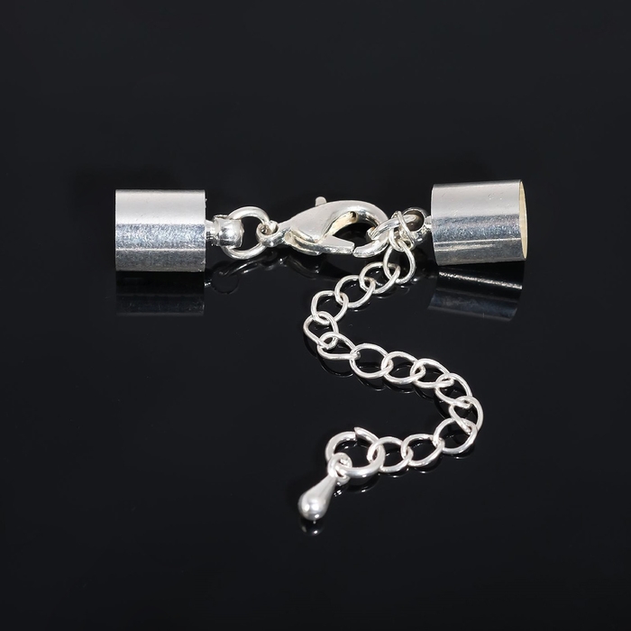 Замок-карабин (набор 5 шт.), 12×7 мм с удлинителем и обжимными круглыми концевиками 11×7 мм (внутренний 6,5 мм), цвет серебро