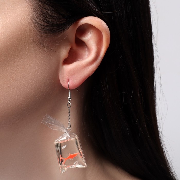Серьги акриловые «Рыбка» в пакете, цвет оранжевый