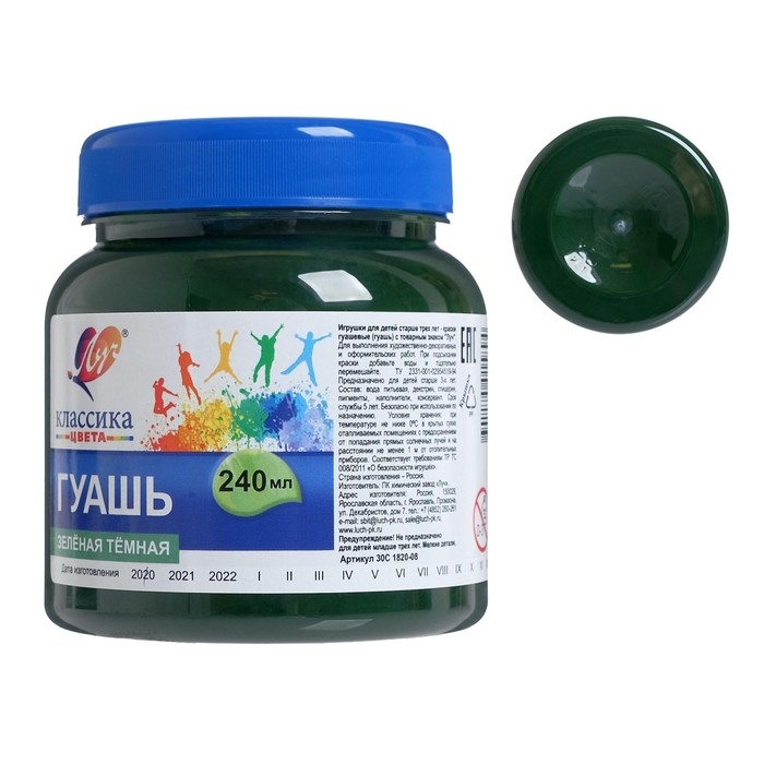 Гуашь "Луч" Классика цвета, 240 мл, зелёная тёмная