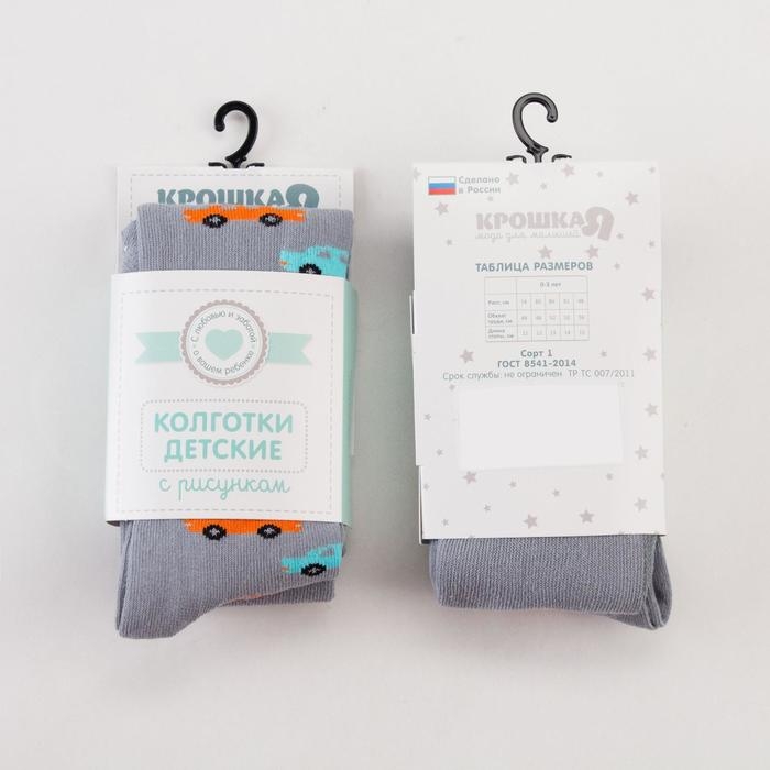 Колготки Крошка Я «Машинки», цвет серый, рост 86-92 см