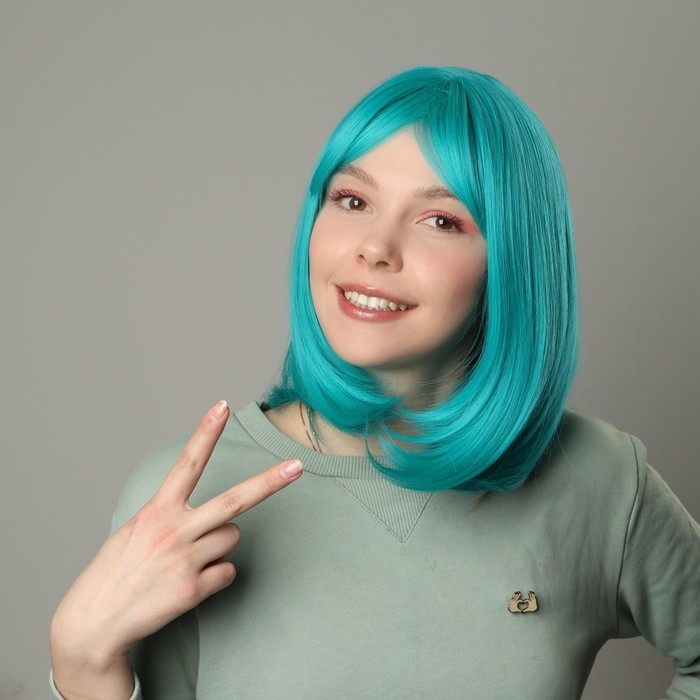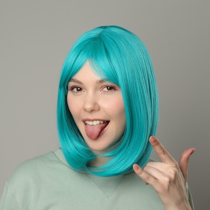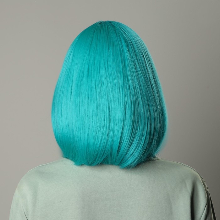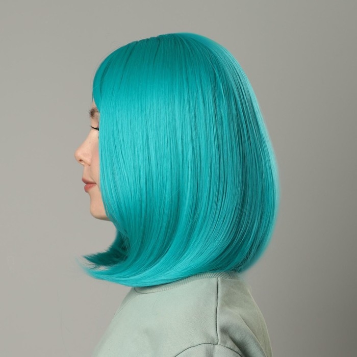 Парик искусственный, с чёлкой, имитация кожи, 30 см, цвет бирюзовый(#SHT127)