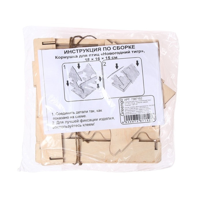Деревянная кормушка своими руками для птиц «Тигр», 15,5 × 15 × 18,5 см, Greengo