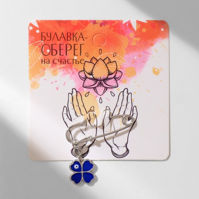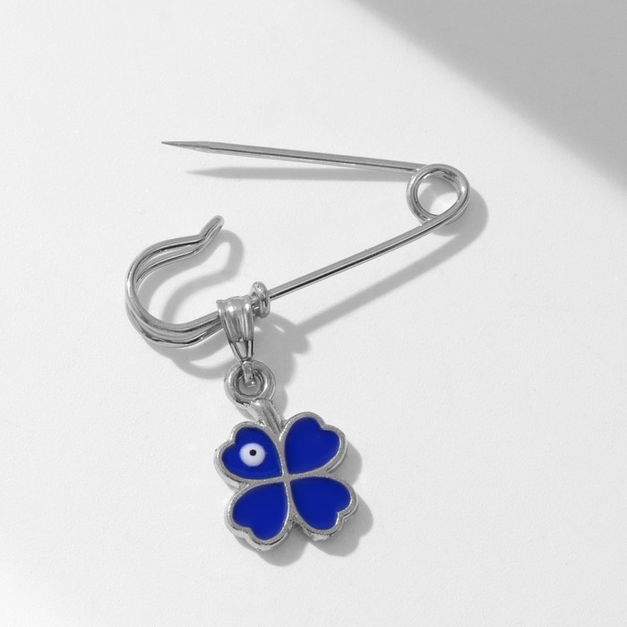 Булавка-оберег «Клевер» с глазком, 3,5 см, цвет синий в серебре