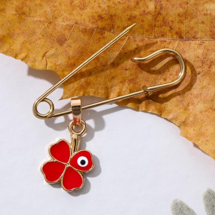 Булавка-оберег «Клевер» с глазком, 3,5см, цвет красный в золоте