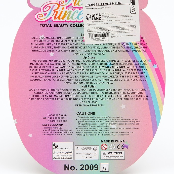 Тени для век детские «Для самой прекрекрасной», 9 цветов по 2 гр