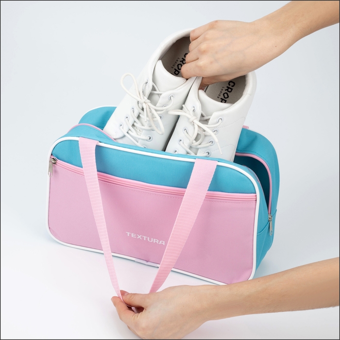 Сумка для обуви на молнии TEXTURA, наружный карман, цвет розовый/голубой