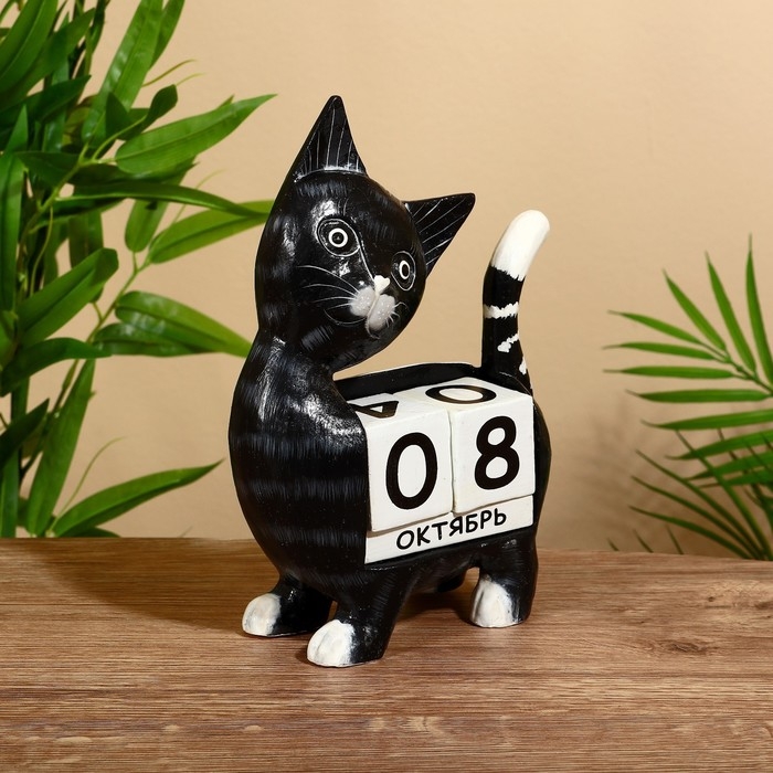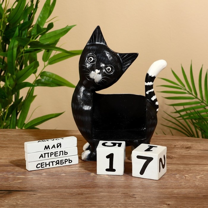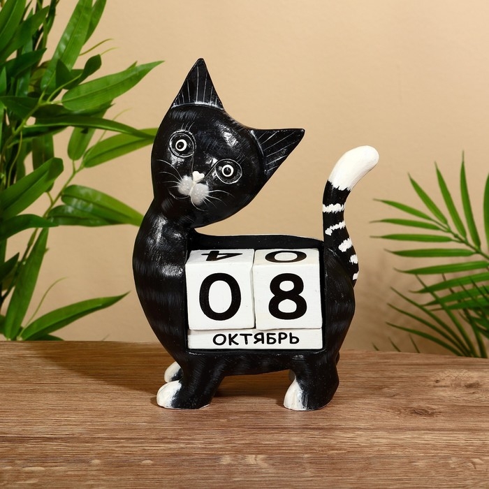 Вечный календарь "Киска" дерево 15х22х6 см