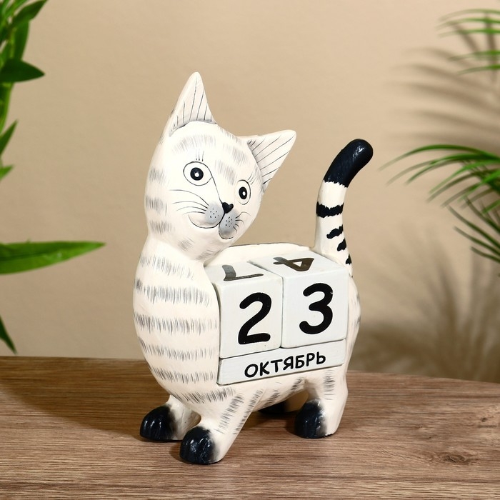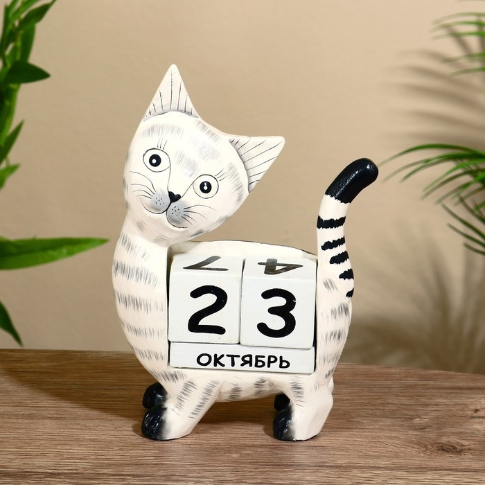Вечный календарь "Кошечка" дерево 15х22х6 см