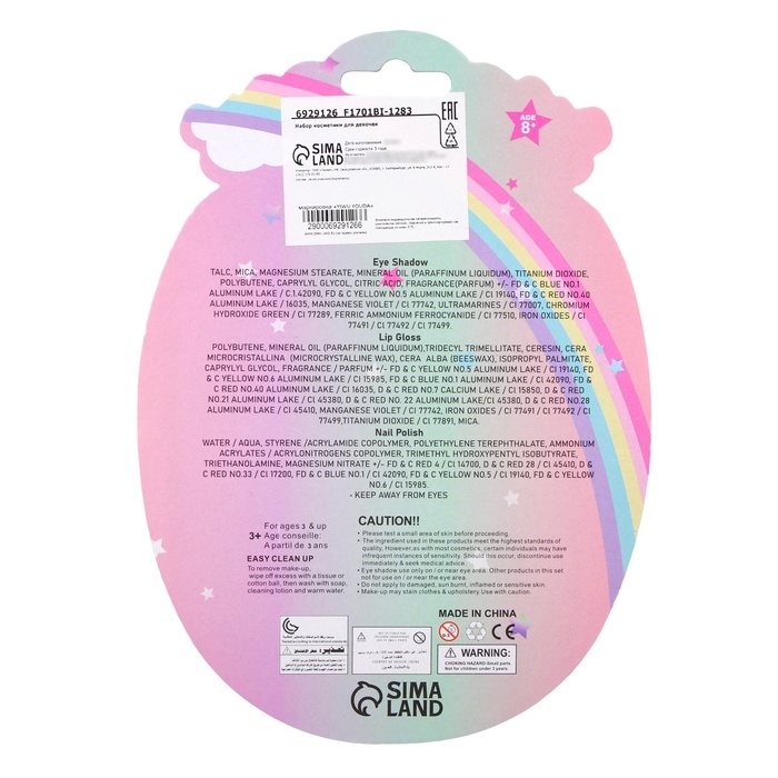 Детская косметика позволит ребёнку устраивать эксперименты со своим стилем. Набор поможет девочке подобрать оптимальные варианты для вечерних и дневных образов. Косметика без труда смывается водой или с помощью ватного диска и безопасна для детской кожи.