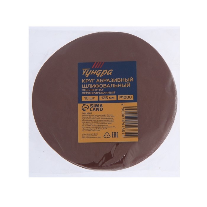 Круг абразивный шлифовальный под "липучку" ТУНДРА, 125 мм, Р1000, 10 шт.